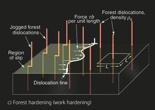 Stress causes strain. If you are human, the ability to cope with stress without undue strain is called resilience. If you are a material, it is called elastic modulus. Stress is something that is applied to a material by loading it. Strain—a change of shape—is its response; it depends on the magnitude of the stress and the way it is applied—the mode of loading. Stiffness is the resistance to change of shape that is elastic, meaning that the material returns to its original shape when the stress is removed. Strength is its resistance to permanent distortion or total failure. Stress and strain are not material properties; they describe a stimulus and a response. Stiffness (measured by the elastic modulus E, defined in a moment) and strength (measured by the elastic limit σy or tensile strength σts) are material properties. Materials are better at supporting static loads than loads that fluctuate. The long-term cyclic load a material can tolerate is barely one-third of its tensile strength (fatigue resistance). Repetition is tiring, the cause of many human mistakes and accidents. Materials, too, grow tired if repeatedly stressed, with failure as a consequence. Even when the amplitude of the cycles is very small, some energy dissipation or damping occurs. Larger amplitudes cause the slow accumulation of damage, a little on each cycle, until a critical level is reached at which a crack forms. Continued cycling causes the crack to grow until the component suddenly fails. The cyclic stress hardens the material and causes damage in the form of dislocation tangles to accumulate, from which a crack nucleates and grows until it reaches the critical size for fracture. Fatigue in materials is the result of cumulative damage processes that are usually induced by repeated loading cycles. Since the energy dissipation associated with damage is irreversible, and the loading cycles are accompanied by the evolution of heat, the corresponding relationship stress and strain is not single-valued, but rather exhibits a memory-dependence, or hysteresis.
